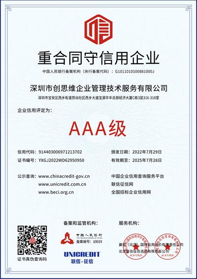 本文來源:驗廠之家網(wǎng) - 祝賀深圳市創(chuàng)思維企業(yè)管理技術(shù)服務(wù)有限公司榮獲“重合同守信用企業(yè)”榮譽(yù)證書