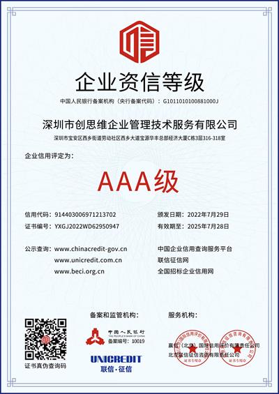 本文來源:驗(yàn)廠之家網(wǎng) - 祝賀深圳市創(chuàng)思維企業(yè)管理技術(shù)服務(wù)有限公司榮獲“企業(yè)資信等級(jí)”榮譽(yù)證書