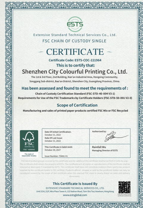 祝賀深圳市好晶彩印刷有限公司2022年一次性成功通過FSC認(rèn)證