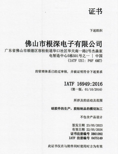 祝賀佛山市根深電子有限公司2023年一次性成功通過IATF16949認證