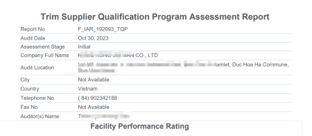 本文來(lái)源:驗(yàn)廠之家網(wǎng) - 祝賀HONGKONG俊文(越南)有限公司2023年一次性成功通過(guò)ITS-TQP驗(yàn)廠審核并且獲得94分