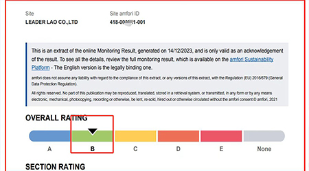 本文來源:驗(yàn)廠之家網(wǎng) - 祝賀老撾工廠LEADER LAO CO,LTD 2023年一次性成功通過ITS-BSCI驗(yàn)廠并取得B級(jí)合格報(bào)告