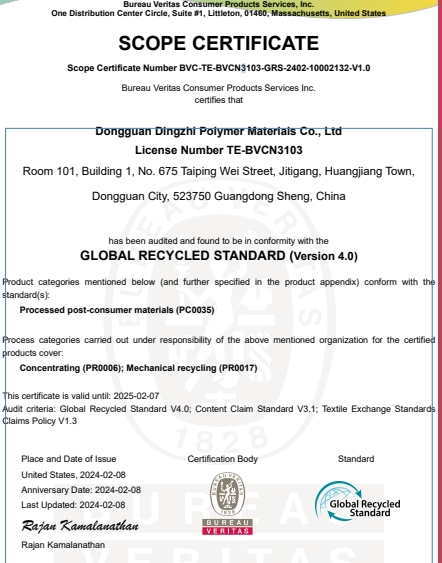 祝賀東莞鼎智高分子材料有限公司2024年一次性成功通過(guò)GRS認(rèn)證