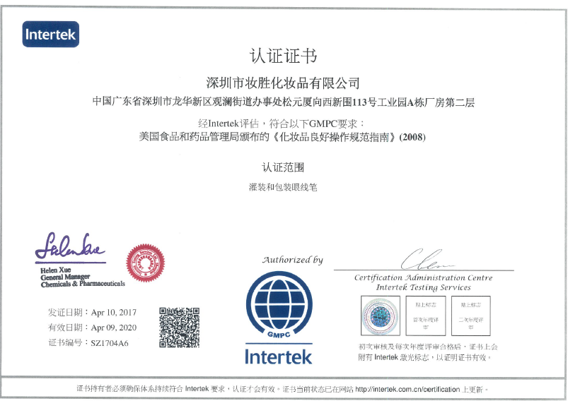 本文來源:驗廠之家網 - 祝賀深圳市妝勝化妝品有限公司順利通過ITS GMPC及ISO22716認證