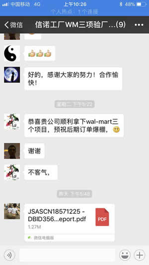 2018年初次與深圳創(chuàng)思維戰(zhàn)略合作,從簽約到wal-mart三項全部通過創(chuàng)思維團隊僅僅用了18個工作日,公司的高效率,高質(zhì)量的工作精神感染了客戶,客戶給了我們的高度贊賞,未來我們一起再征途。