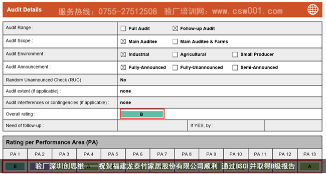 本文來源:驗廠之家網 - 祝賀福建龍泰竹家居股份有限公司順利通過BSCI驗廠認證并取得B級報告