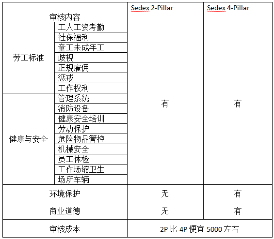 Sedex驗廠_Sedex 2-Pillar和Sedex 4-Pilla的區別除了審核內容和價格方面最重要的區別是:接sedex4p報告的客戶不接受sedex2p的報告,接受sedex2p報告的客戶也接受sedex4p的報告,技術支持深圳創思維。