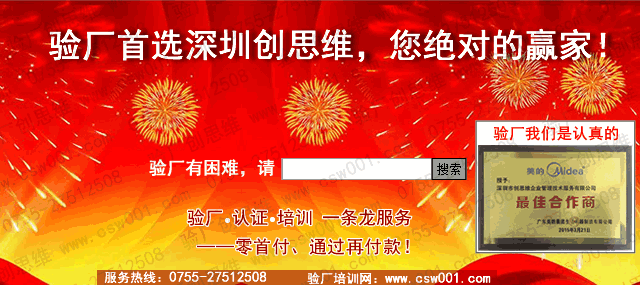 如果企業(yè)想做驗(yàn)廠輔導(dǎo),不妨考慮一下深圳市創(chuàng)思維,創(chuàng)思維驗(yàn)廠之家網(wǎng)是專業(yè)的驗(yàn)廠輔導(dǎo)公司,已經(jīng)為全國(guó)各地上萬(wàn)家企業(yè)服務(wù)過,在全國(guó)多處設(shè)有辦事處,會(huì)就近安排老師進(jìn)場(chǎng)輔導(dǎo),我們的輔導(dǎo)原則是幫助企業(yè)通過驗(yàn)廠,深圳市創(chuàng)思維是一家正規(guī)專業(yè)的驗(yàn)廠咨詢、驗(yàn)廠輔導(dǎo)、認(rèn)證輔導(dǎo)公司,一切以合同條款為準(zhǔn),不亂收費(fèi),并盡可能為企業(yè)節(jié)約成本。驗(yàn)廠零首付,通過后付款,驗(yàn)廠必過,驗(yàn)廠無(wú)憂!