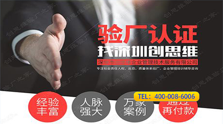 如果企業(yè)想做驗(yàn)廠輔導(dǎo),不妨考慮一下創(chuàng)思維驗(yàn)廠之家,創(chuàng)思維驗(yàn)廠之家是專業(yè)的驗(yàn)廠輔導(dǎo)公司,已經(jīng)為全國各地上萬家企業(yè)服務(wù)過,在全國多處設(shè)有辦事處,會就近安排老師進(jìn)場輔導(dǎo),我們的輔導(dǎo)原則是幫助企業(yè)通過驗(yàn)廠,深圳市創(chuàng)思維是一家正規(guī)專業(yè)的驗(yàn)廠咨詢、驗(yàn)廠輔導(dǎo)、認(rèn)證輔導(dǎo)公司,一切以合同條款為準(zhǔn),不亂收費(fèi),并盡可能為企業(yè)節(jié)約成本,通過后付款!