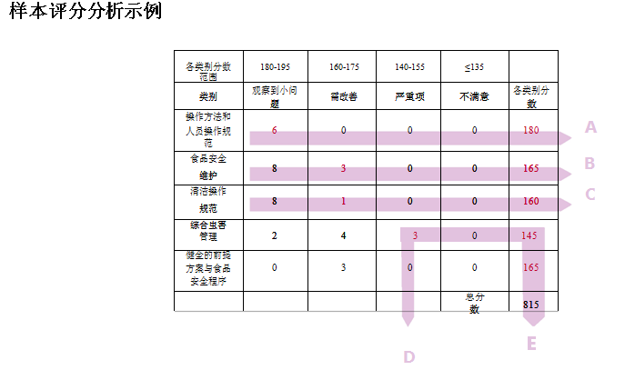 原則二: 另外四個(gè)類別的最低分是 145 分,所以“健全的前提方案與食品安全程序”的得分不能超出 160-175 分的范圍。